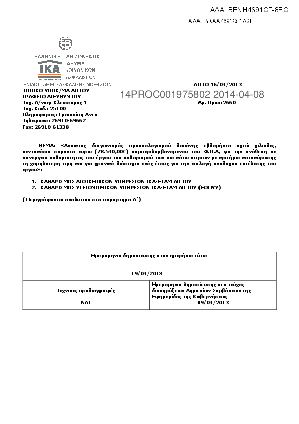 Αναζήτηση σε προκηρύξεις και συμβάσεις για:  ικα καθαρισμό