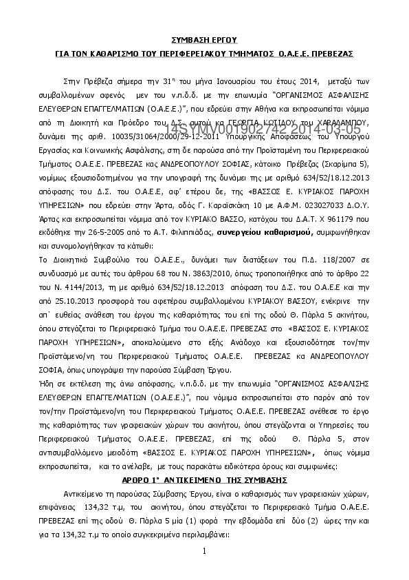5. ΣΥΜΒΑΣΗ ΕΡΓΟΥ ΓΙΑ ΤΟΝ ΚΑΘΑΡΙΣΜΟ ΤΟΥ ΠΕΡΙΦΕΡΕΙΑΚΟΥ ΤΜΗΜΑΤΟΣ Ο.Α.Ε.Ε. ΠΡΕΒΕΖΑΣ