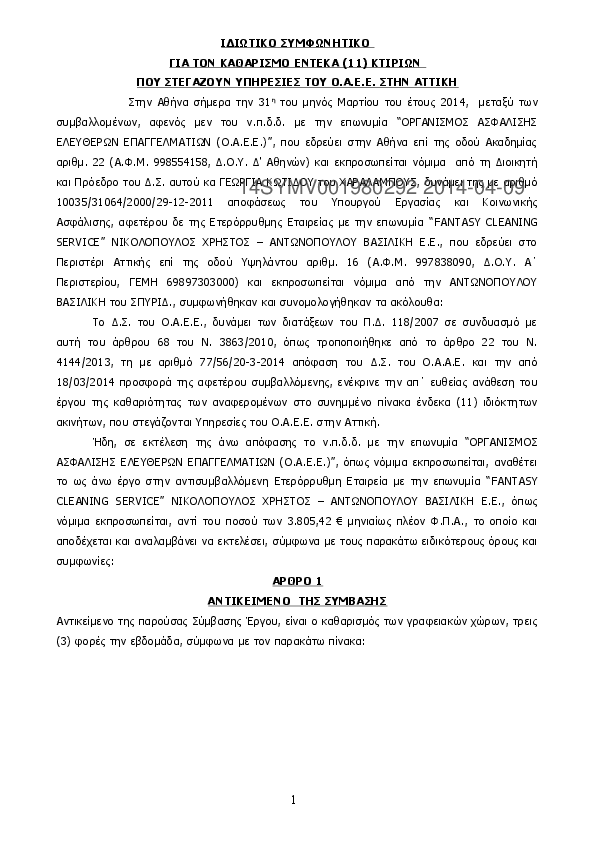 6. ΙΔΙΩΤΙΚΟ ΣΥΜΦΩΝΗΤΙΚΟ ΚΑΘΑΡΙΣΜΟΥ ΚΤΙΡΙΩΝ ΠΟΥ ΣΤΕΓΑΖΟΥΝ ΥΠΗΡΕΣΙΕΣ ΤΟΥ ΟΑΕΕ ΣΤΗΝ ΑΤΤΙΚΗ