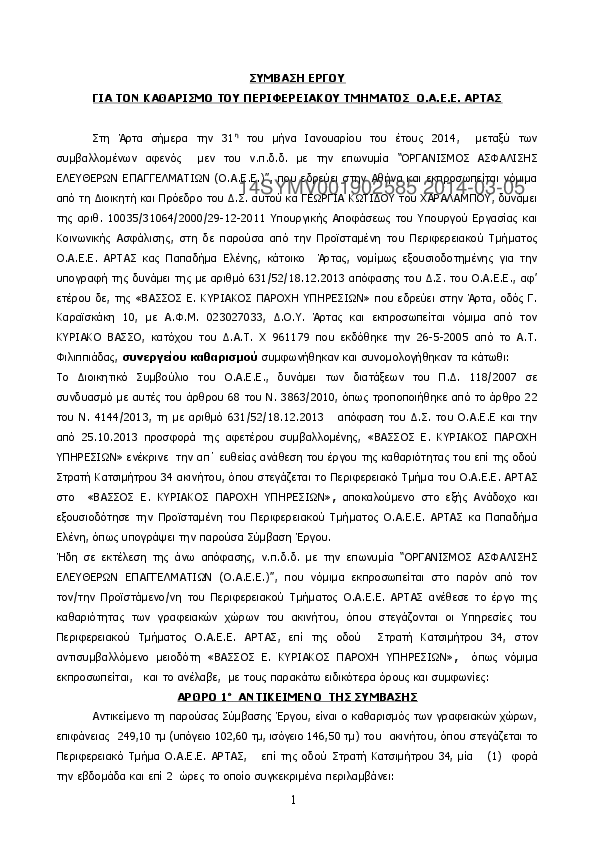 4. ΣΥΜΒΑΣΗ ΕΡΓΟΥ ΓΙΑ ΤΟΝ ΚΑΘΑΡΙΣΜΟ ΤΟΥ ΠΕΡΙΦΕΡΕΙΑΚΟΥ ΤΜΗΜΑΤΟΣ Ο.Α.Ε.Ε. ΑΡΤΑΣ