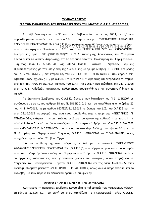 10. ΣΥΜΒΑΣΗ ΕΡΓΟΥ ΓΙΑ ΤΟΝ ΚΑΘΑΡΙΣΜΟ ΤΟΥ ΠΕΡΙΦ/ΚΟΥ ΤΜΗΜΑΤΟΣ ΟΑΕΕ ΛΙΒΑΔΕΙΑΣ