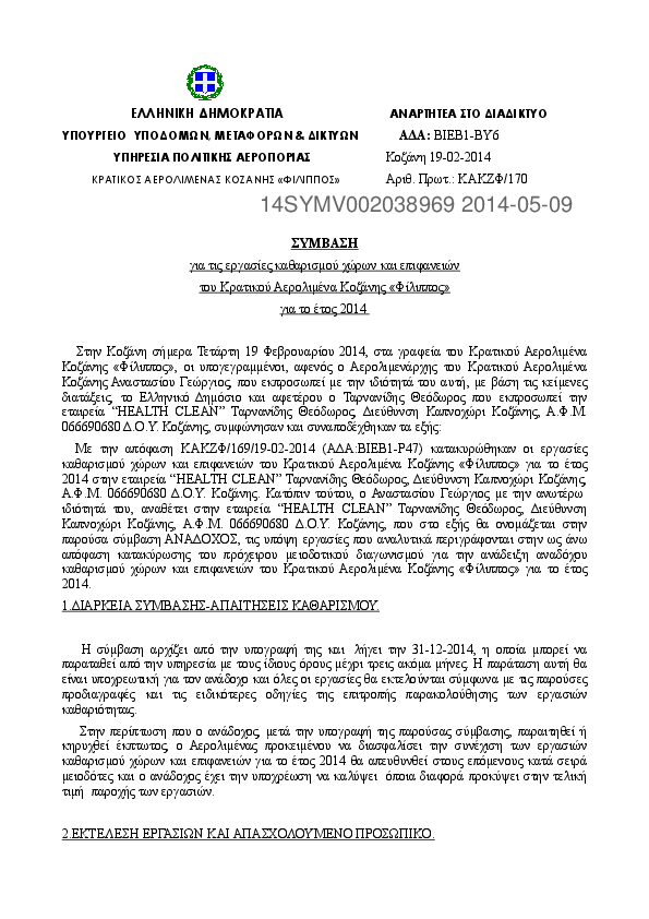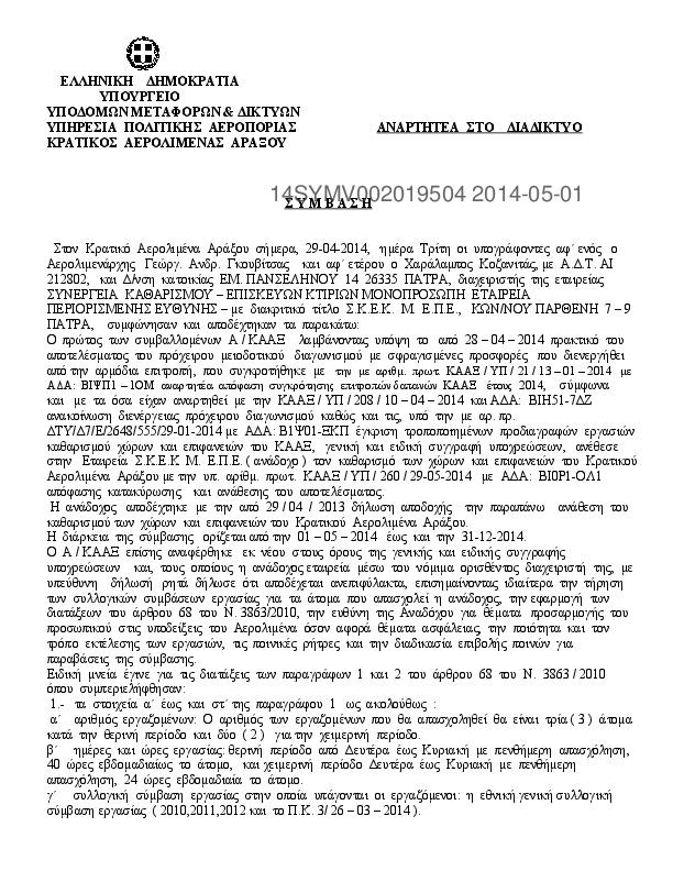 7. Σύμβαση καθαρισμού χώρων και επιφανειών του Κρατικού Αερολιμένα Αράξου