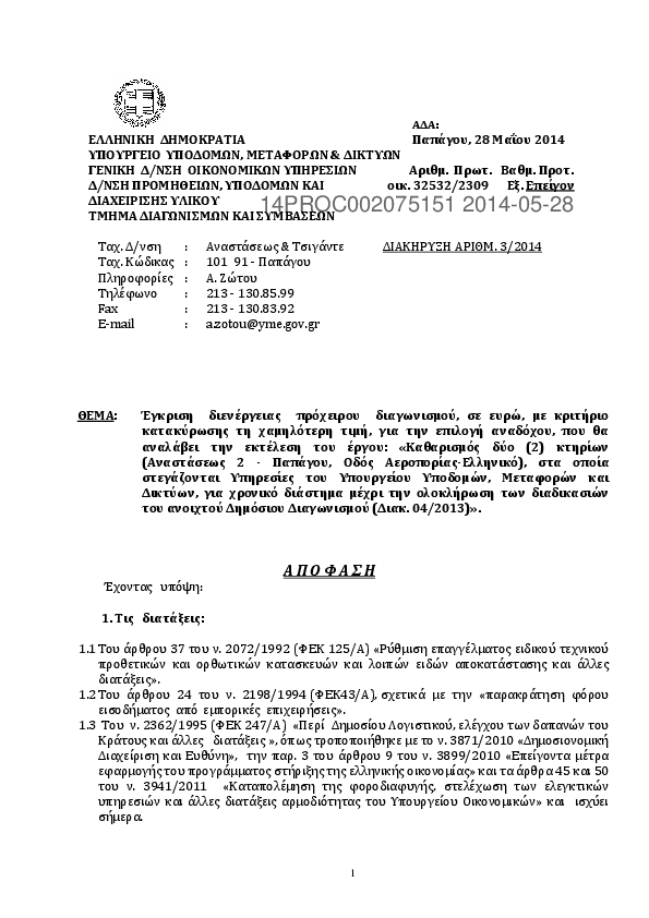 Αναζήτηση σε προκηρύξεις και συμβάσεις για: