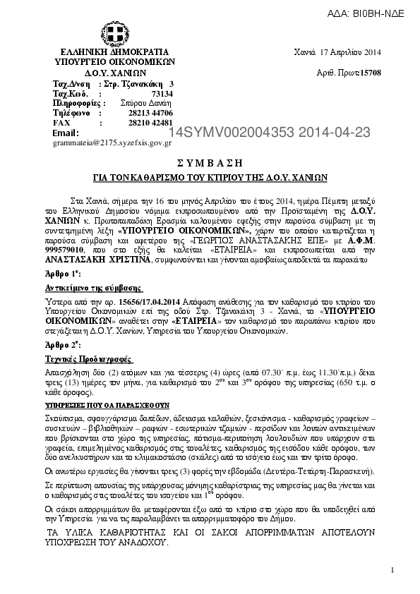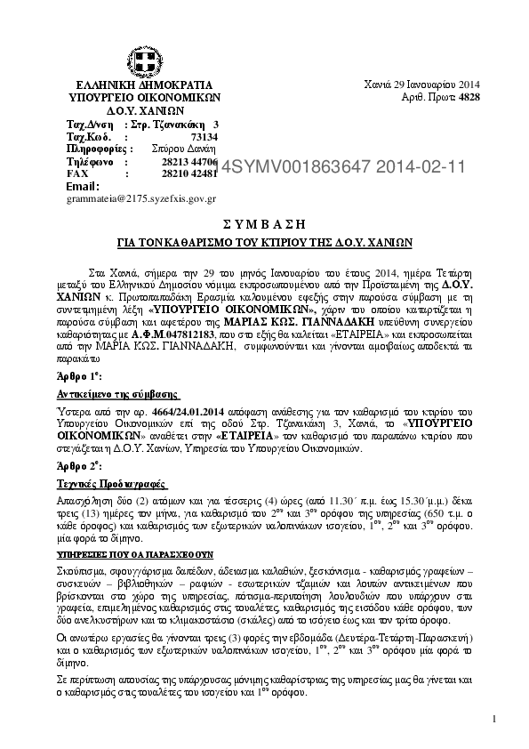 7. Σύμβαση καθαρισμού κτιρίου Δ.Ο.Υ. Χανίων