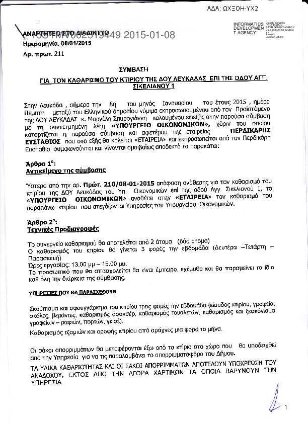 1. ΣΥΜΒΑΣΗ ΕΡΓΟΥ ΚΑΘΑΡΙΟΤΗΤΑΣ
