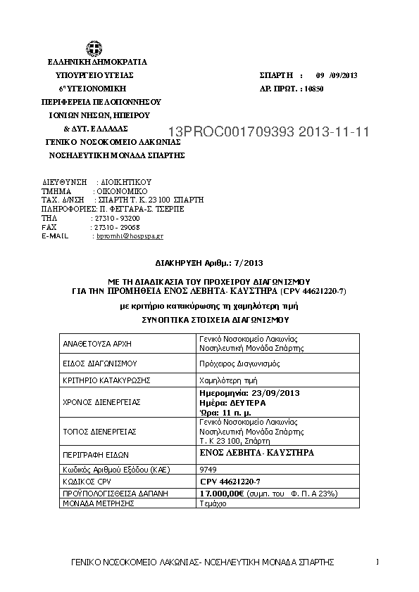 6. ΔΙΑΚΗΡΥΞΗ ΔΙΕΘΝΗ ΑΝΟΙΧΤΟΥ ΔΙΑΓΩΝΙΣΜΟΥ ΓΙΑ ΤΗΝ ΠΡΟΜΗΘΕΙΑ ΤΟΥ ΕΙΔΟΥΣ ΄΄ΕΓΧΕΙΡΙΤΙΚΗ ΤΕΧΝΙΚΗ΄΄(ΑΡ. ΔΙΑΚ.30/2013)(ΟΡΘΗ ΕΠΑΝΑΛΗΨΗ)