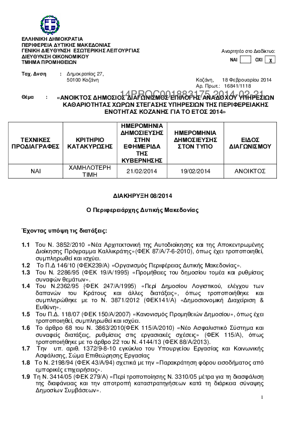 Αναζήτηση σε προκηρύξεις και συμβάσεις για: