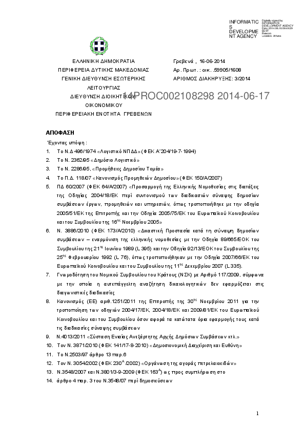 3. ΠΡΟΚΗΡΥΞΗ ΠΡΟΜΗΘΕΙΑΣ ΥΓΡΩΝ ΚΑΥΣΙΜΩΝ ΓΙΑ ΤΗΝ ΚΑΛΥΨΗ ΤΩΝ ΑΝΑΓΚΩΝ ΤΗΣ ΠΕ ΓΡΕΒΕΝΩΝ