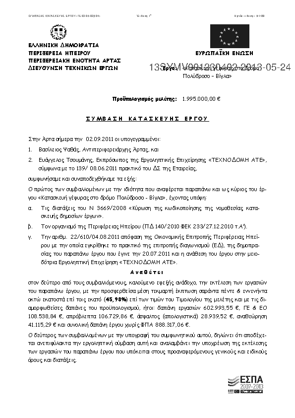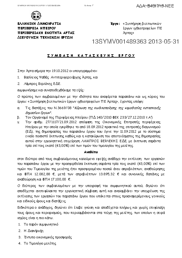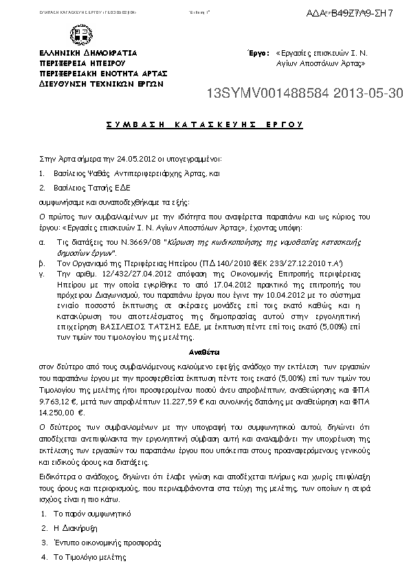 5. ΣΥΜΒΑΣΗ ΑΝΑΘΕΣΗΣ ΕΡΓΟΥ ΓΙΑ ΤΗ ΠΡΟΒΟΛΗ ΤΩΝ ΑΡΧ/ΚΩΝ,ΙΣΤΟΡΙΚΩΝ ΚΑΙ ΒΥΖΑΝΤΙΝΩΝ ΜΝΗΜΕΙΩΝ ΤΗΣ ΠΕΡΙΦ. ΗΠΕΙΡ