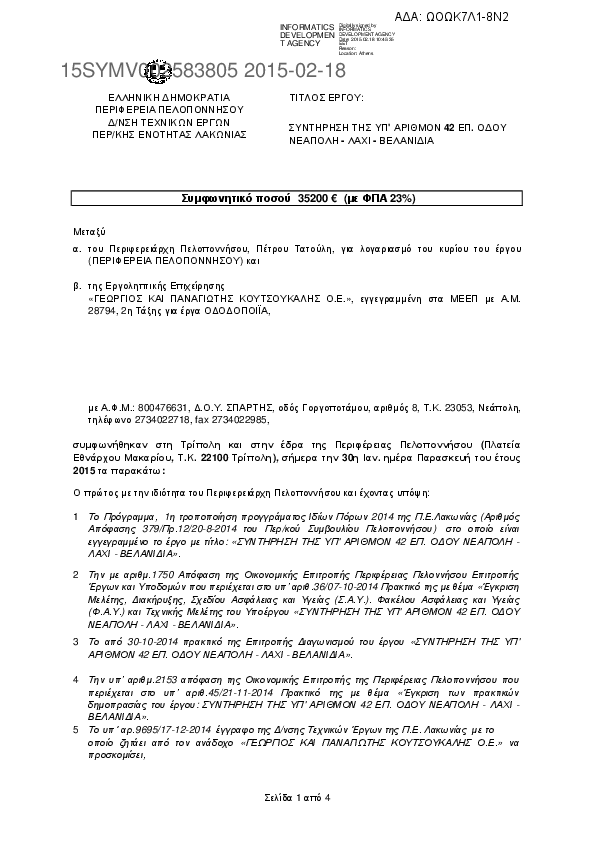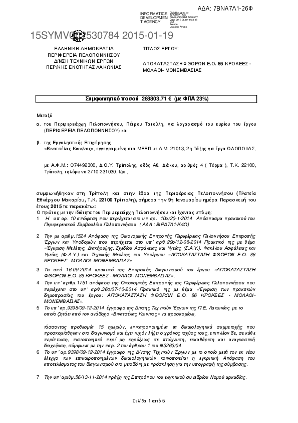7. ΣΥΜΒΑΣΗ ΑΠΟΚΑΤΑΣΤΑΣΗ ΦΘΟΡΩΝ Ε.Ο. 86 ΚΡΟΚΕΕΣ ΜΟΛΑΟΙ - ΜΟΝΕΜΒΑΣΙΑΣ
