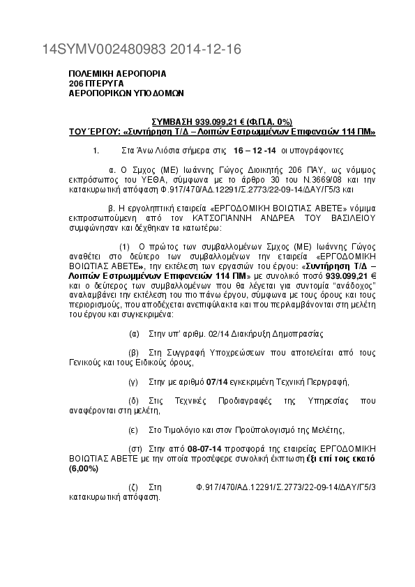 1. Διακήρυξη Πρόχειρου Μειοδοτικού Διαγωνισμού (Δ.4/14) για την Προμήθεια Ανταλλακτικών και Εργασίες Συντήρησης UPS 111ΠΜ και 9ης ΜΣΕΠ (ΟΡΘΗ ΕΠΑΝΑΛΗΨΗ)