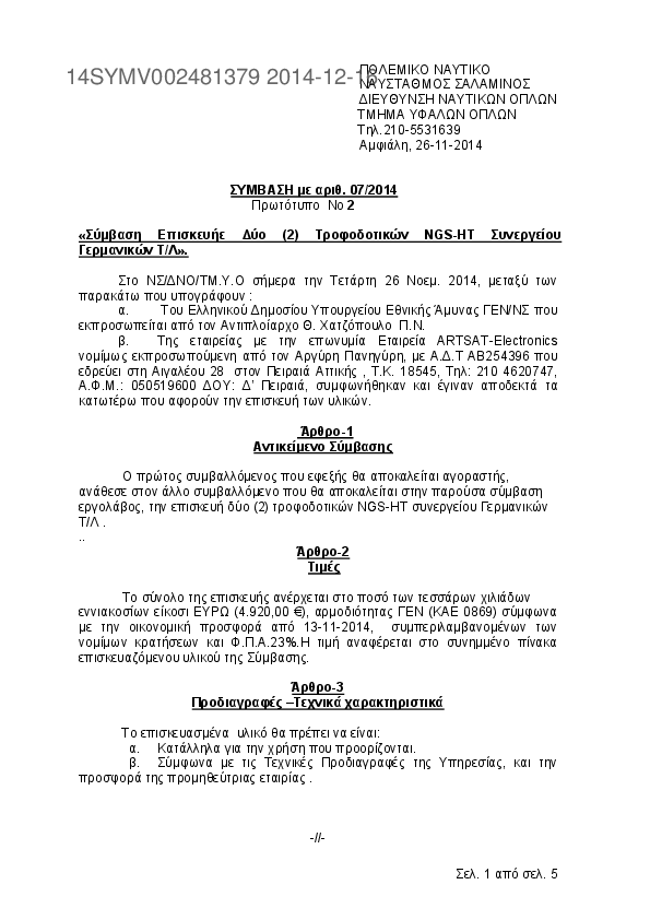 2. Σύμβαση Επισκευής ∆ύο (2) Τροφοδοτικών NGS-HT Συνεργείου Γερμανικών Τ/Λ