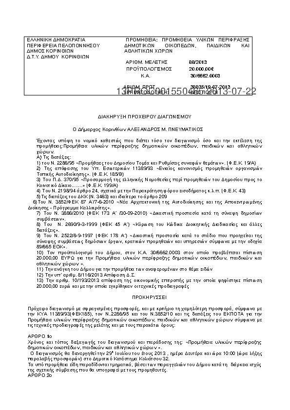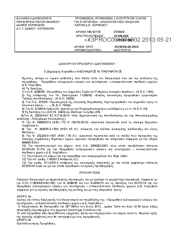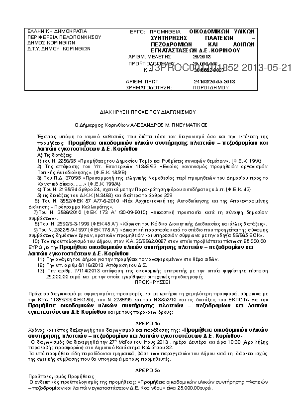 Αναζήτηση σε προκηρύξεις και συμβάσεις για: