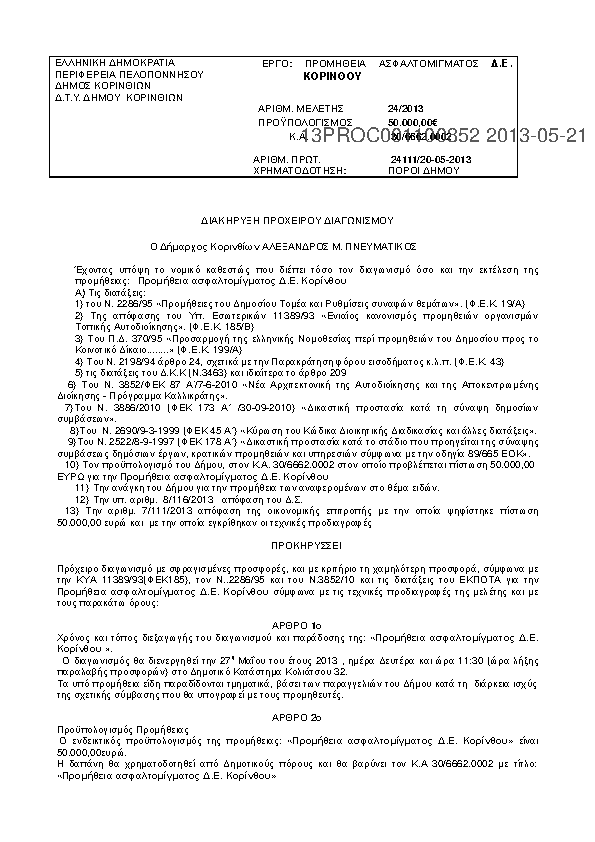 6. Προμήθεια ασφαλτομίγματος Δ.Ε. Κορίνθου