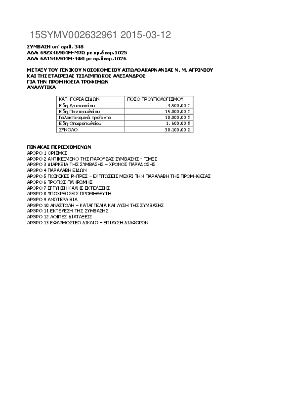 8. ΣΥΜΒΑΣΗ υπ’ αριθ. 348 Προμήθεια : ΤΡΟΦΙΜΩΝ