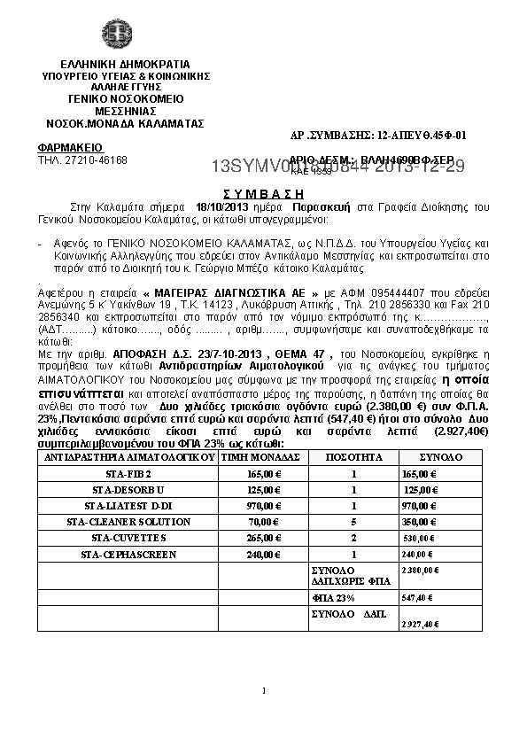3. ΣΥΜΒΑΣΗ ΑΝΤΙΔΡΑΣΤΗΡΙΑ ΑΙΜΑΤΟΛΟΓΙΚΟΥ ΜΑΓΕΙΡΑΣ ΔΙΑΓΝΩΣΤΙΚΑ ΑΕ
