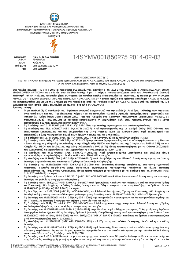 10. ΑΝΑΝΕΩΣΗ ΣΥΜΒΑΣΗΣ ΓΙΑ ΤΗΝ ΠΑΡΟΧΗ ΥΠΗΡΕΣΙΑΣ ΦΥΛΑΞΗΣ ΤΟΥ ΝΟΣΟΚΟΜΕΙΟΥ ΑΠΟ 01/10/2014 ΕΩΣ 31/12/2014