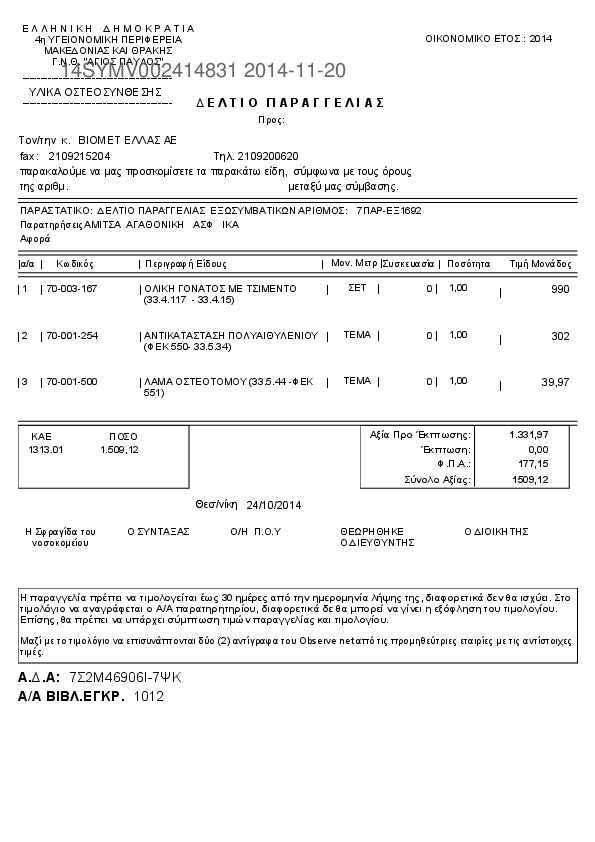 1. ΕΞΩΣΥΜ.ΠΑΡΑΓ.ΥΛΙΚΑ ΟΣΤΕΟΣΥΝΘΕΣΗΣ ΑΜΙΤΣΑ ΑΓΑΘΟΝΙΚΗ