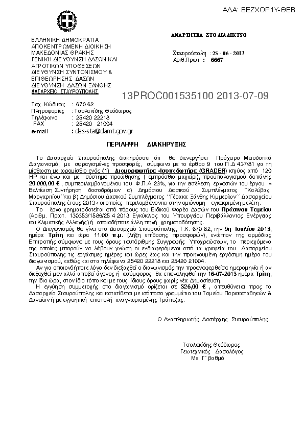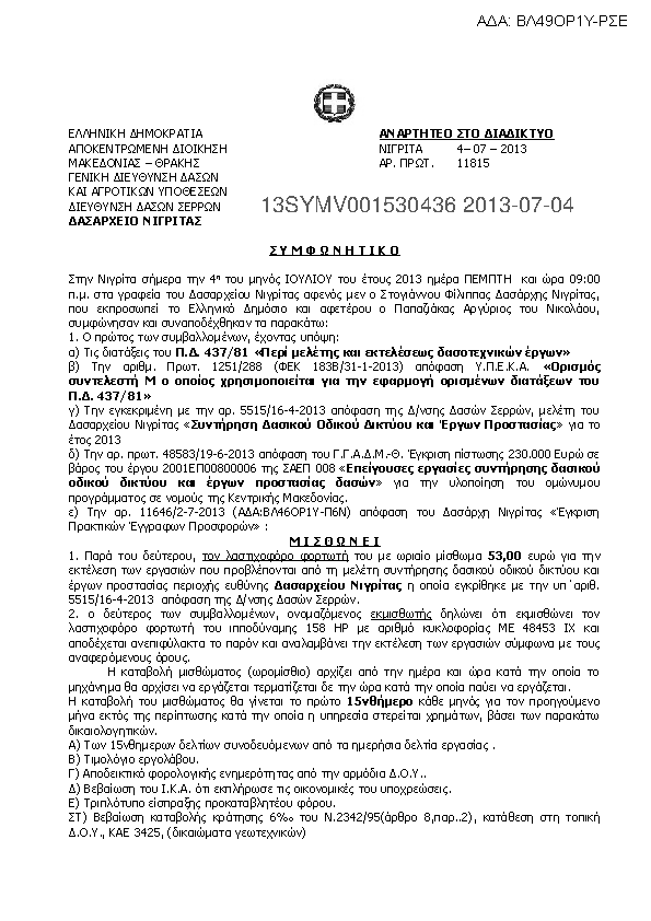9. Σύμβαση εκτέλεσης εργασιών συντήρησης δασικού αντιπυρικού δικτύου περιοχής ευθύνης Δασαρχείου Θεσσαλ
