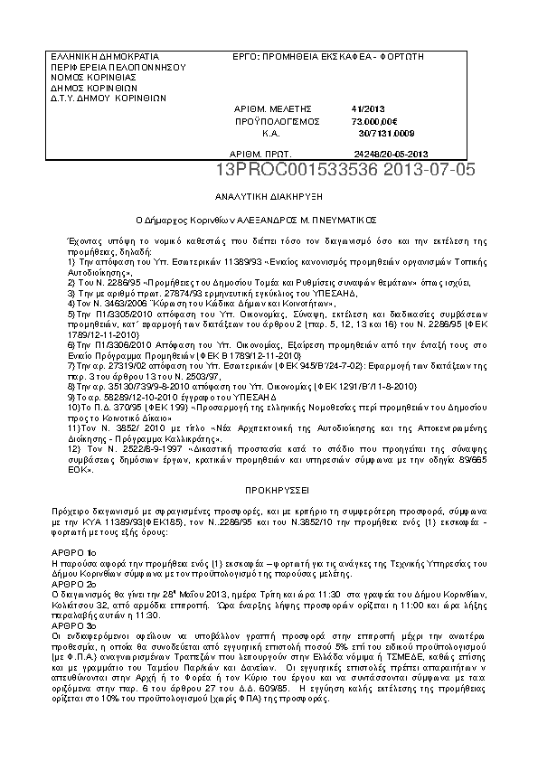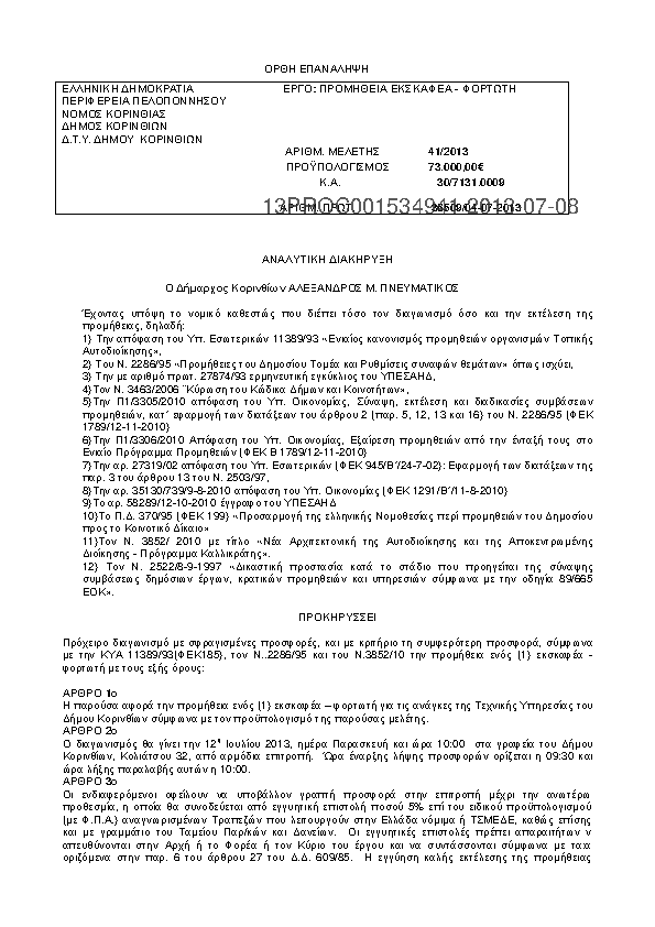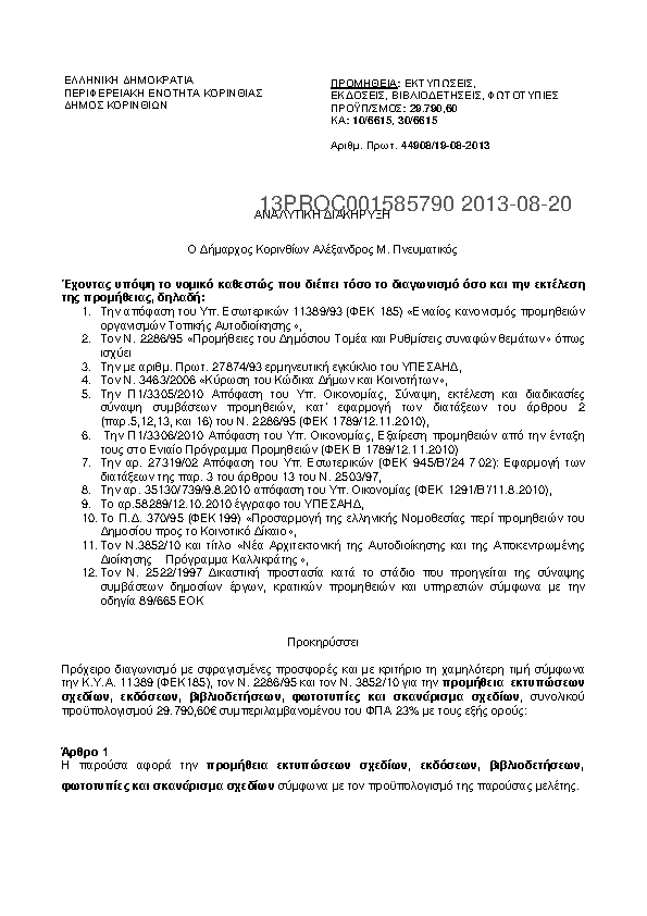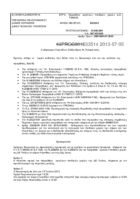 Αναζήτηση σε προκηρύξεις και συμβάσεις για: