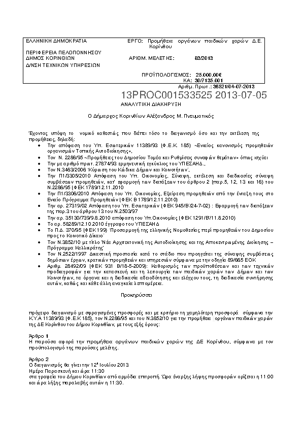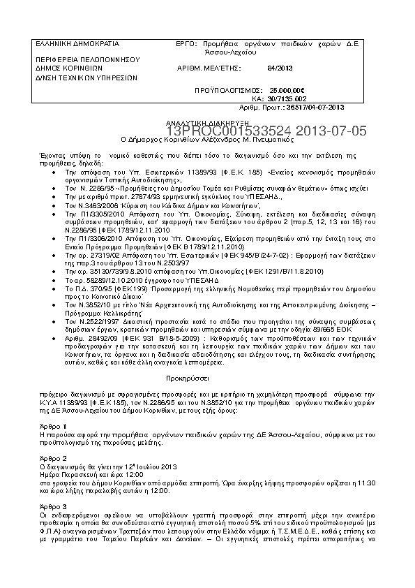 7. Προμήθεια οργάνων παιδικών χαρών Δ.Ε. Κορίνθου