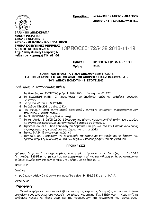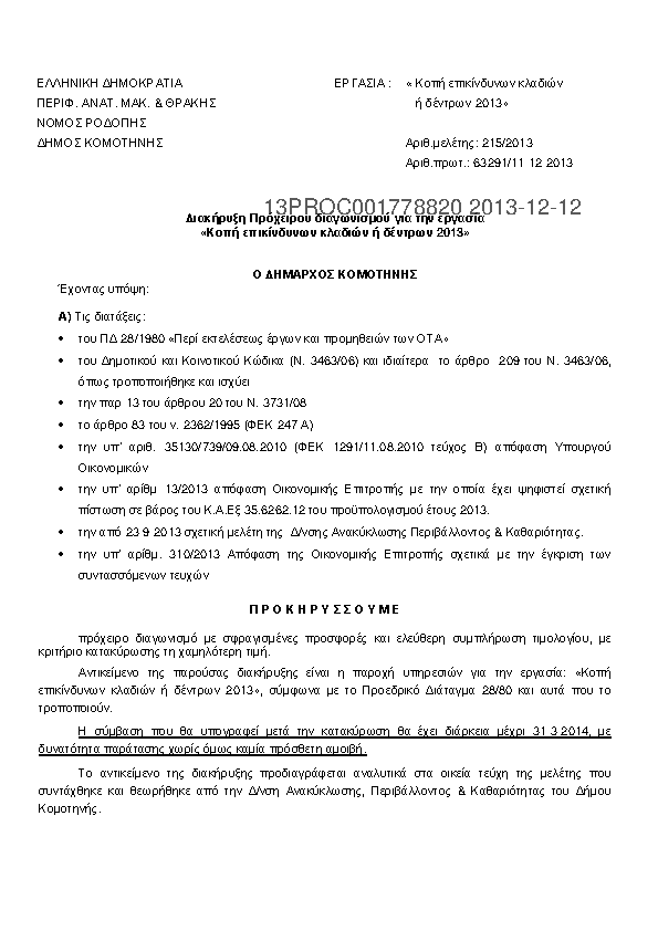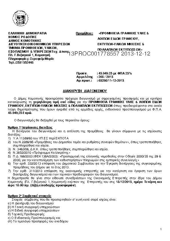 Αναζήτηση σε προκηρύξεις και συμβάσεις για: