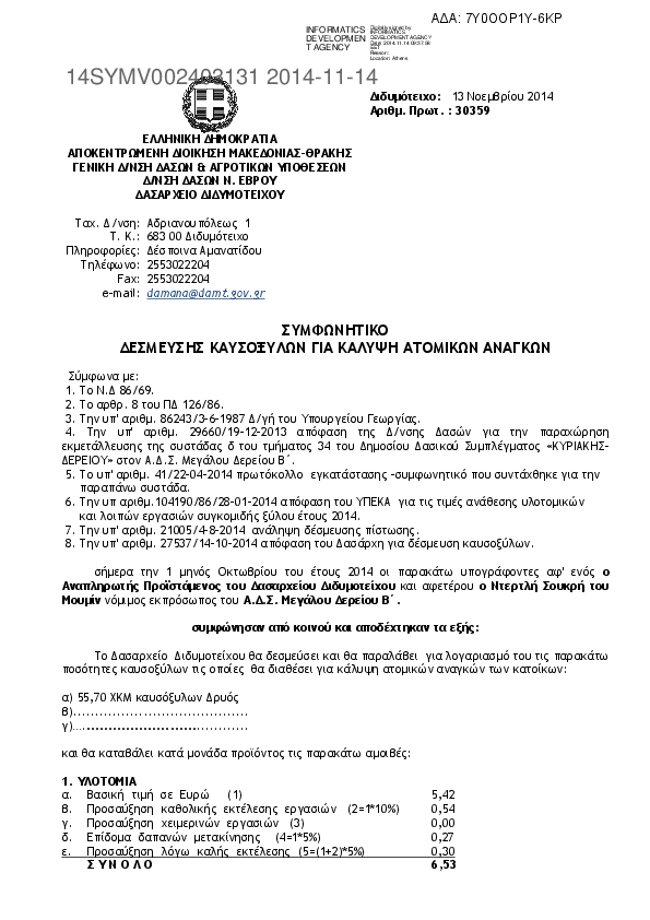 7. ΣΥΜΦΩΝΗΤΙΚΟ ΔΕΣΜΕΥΣΗΣ ΚΑΥΣΟΞΥΛΩΝ ΓΙΑ ΚΑΛΥΨΗ ΑΤΟΜΙΚΩΝ ΑΝΑΓΚΩΝ (ΣΥΣΤΑΔΑ 26ε)