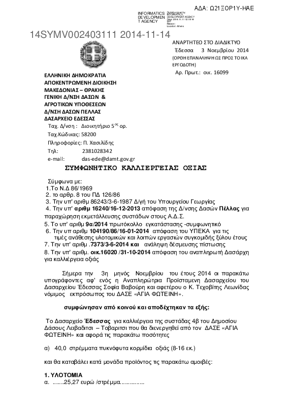 1. ΣΥΜΦΩΝΗΤΙΚΟ ΚΑΛΛΙΕΡΓΕΙΑΣ ΟΞΙΑΣ