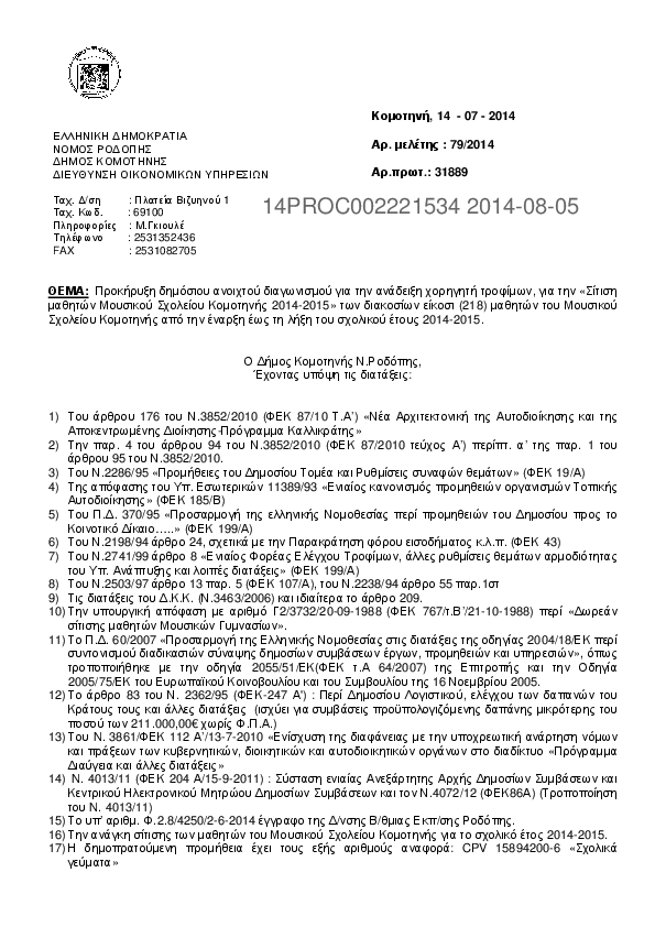 5. Σίτιση μαθητών Μουσικού Σχολείου Κομοτηνής 2014-2015