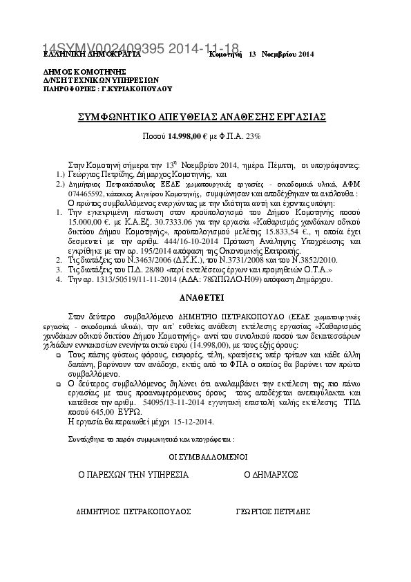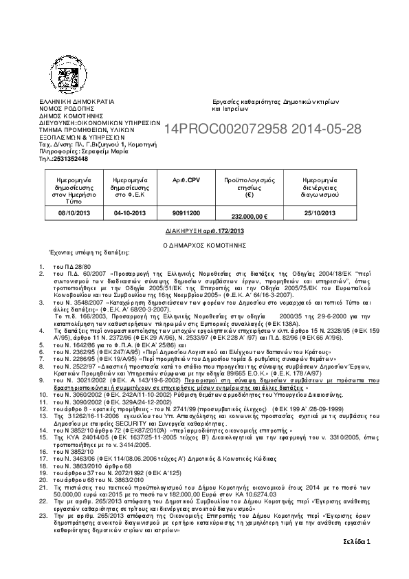 Αναζήτηση σε προκηρύξεις και συμβάσεις για: