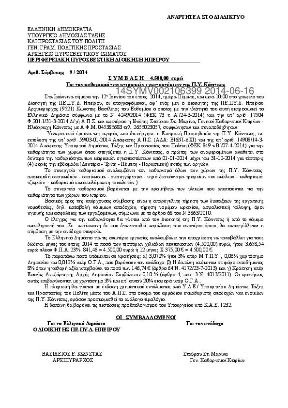 9. Σ Υ Μ Β Α Σ Η 4.500,00 ευρώ για τον καθαρισμό των κτιριακών εγκαταστάσεων της Π.Υ. Κόνιτσας