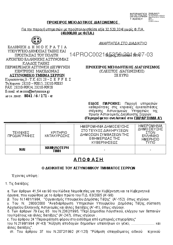 Αναζήτηση σε προκηρύξεις και συμβάσεις για: