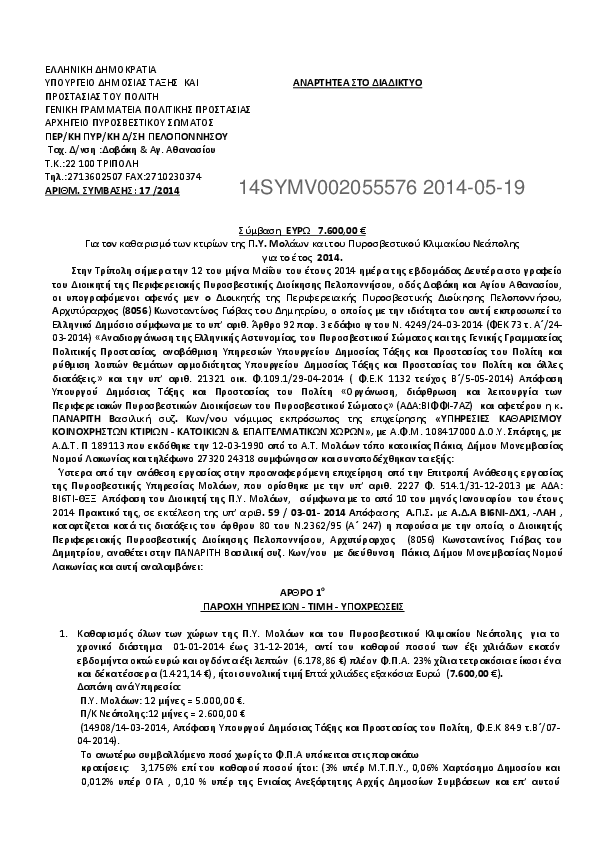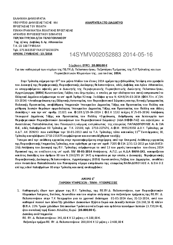 8. ΣΥΜΒΑΣΗ ΓΙΑ ΤΟΝ ΚΑΘΑΡΙΣΜΟ ΚΤΙΡΙΩΝ ΠΥΡΟΣΒΕΣΤΙΚΩΝ ΥΠΗΡΕΣΙΩΝ ΚΑΙ ΚΛΙΜΑΚΙΩΝ