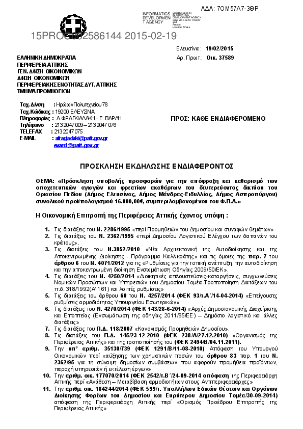 Αναζήτηση σε προκηρύξεις και συμβάσεις για: