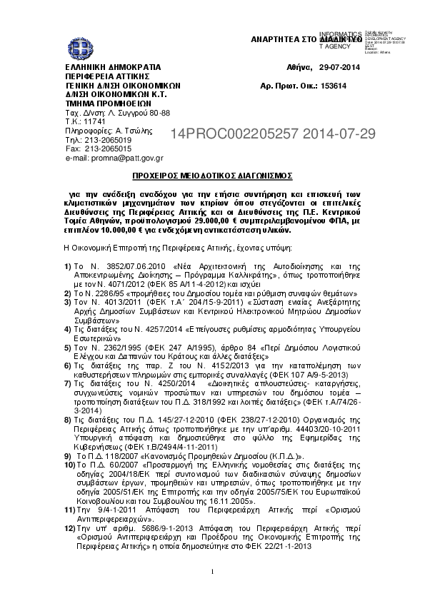 1. ΠΡΟΧΕΙΡΟΣ ΜΕΙΟΔΟΤΙΚΟΣ ΔΙΑΓΩΝ ΓΙΑ ΤΗΝ ΑΝΑΔ ΑΝΑΔΟΧ ΓΙΑ ΤΗΝ ΕΤΗΣ ΣΥΝΤΗΡ & ΕΠΙΣΚΕΥΗ ΤΩΝ ΚΛΙΜΑΤΙΣΤΙΚ ΜΗΧ