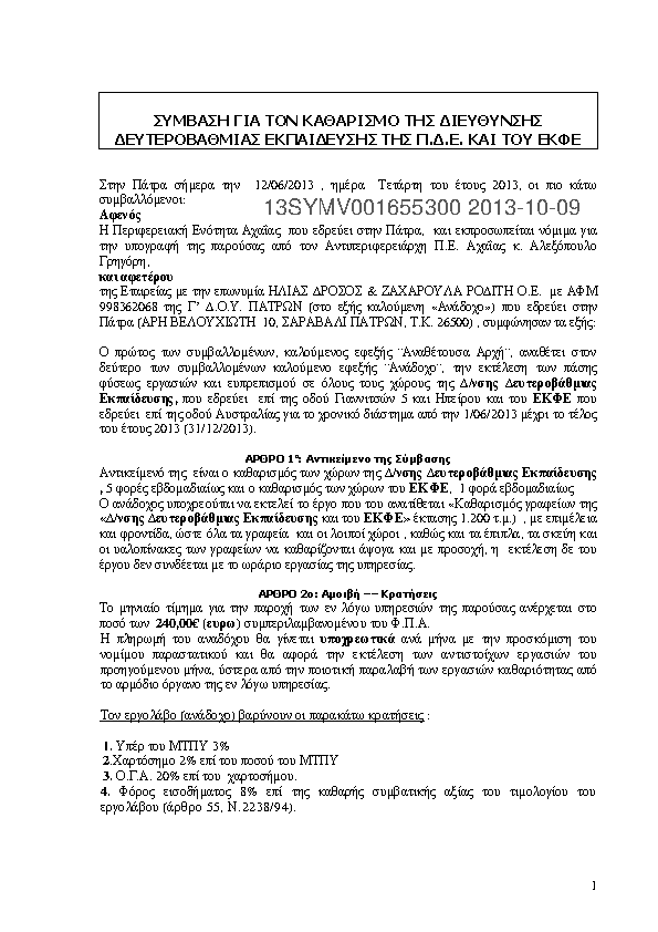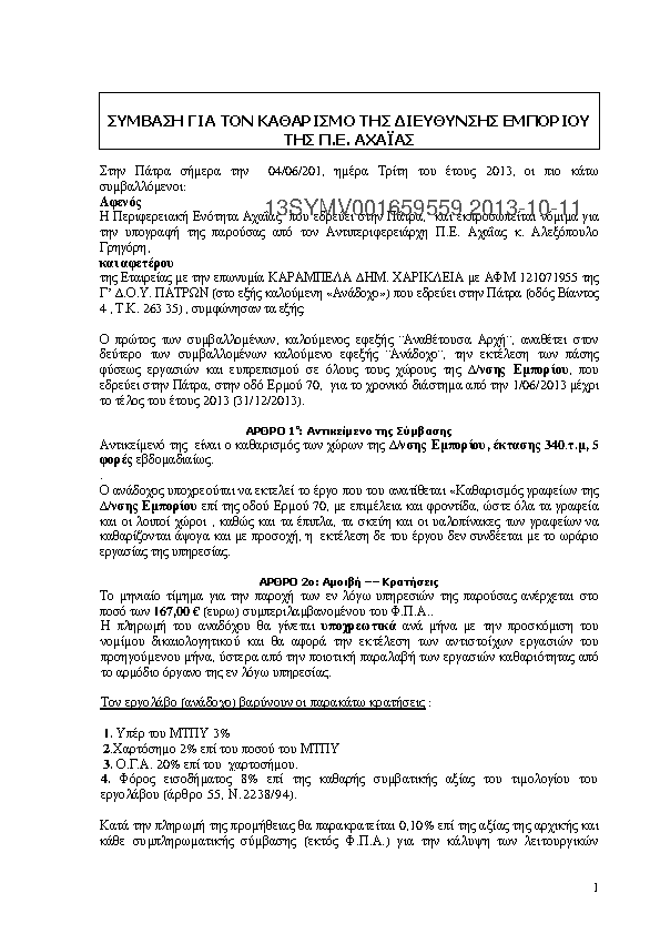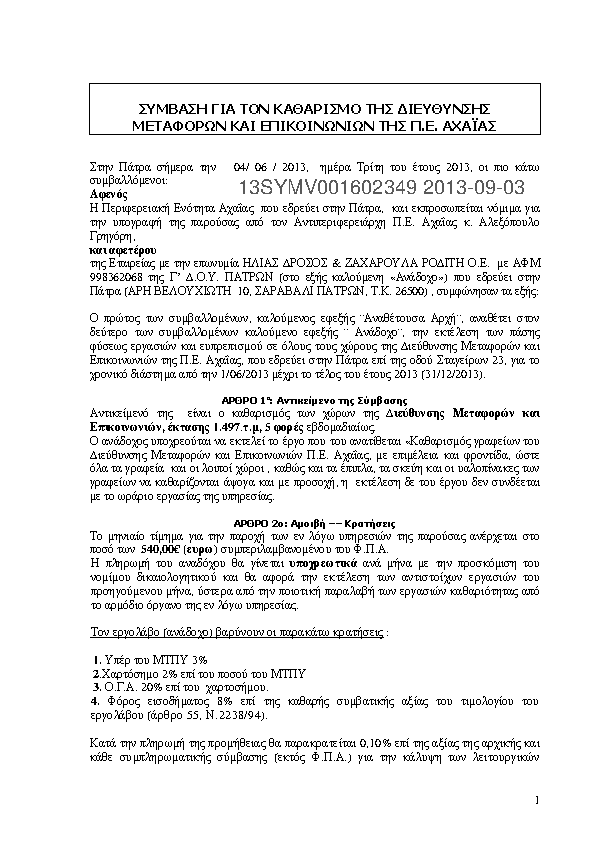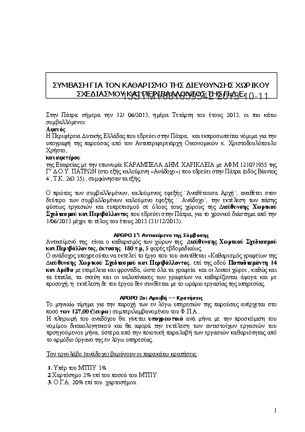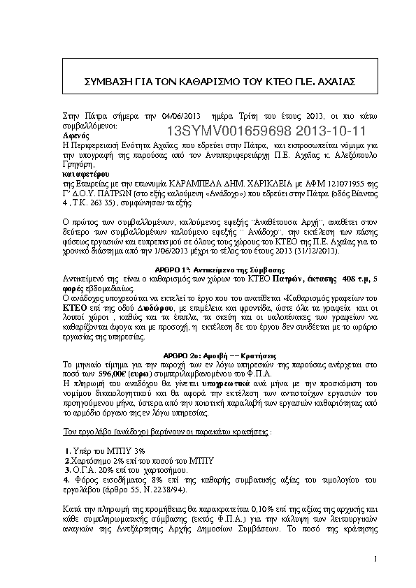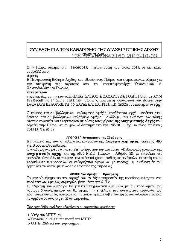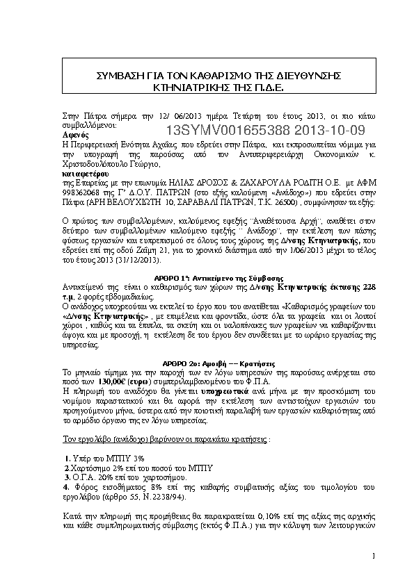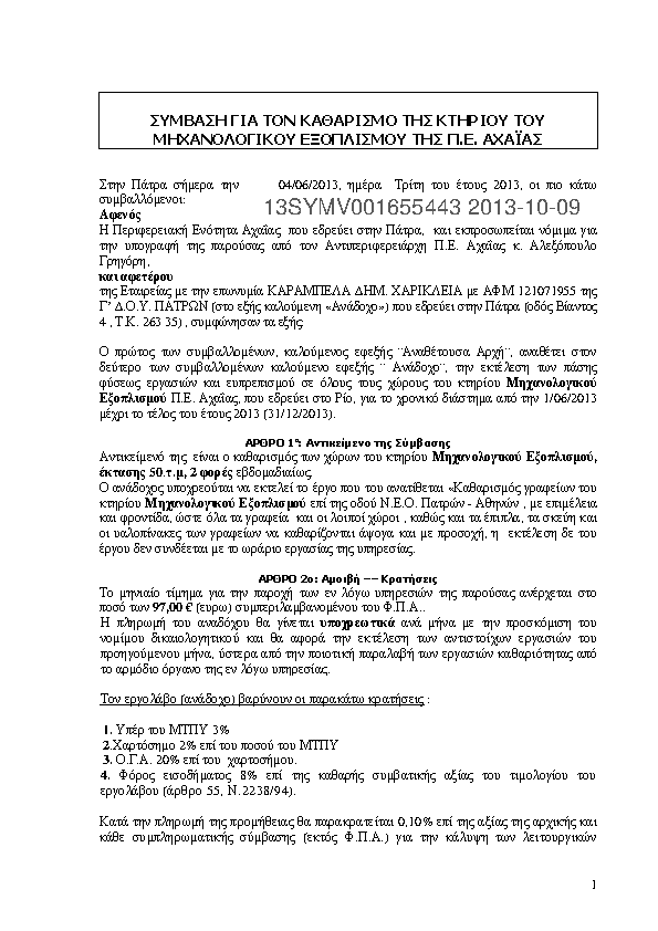 2. ΣΥΜΒΑΣΗ ΓΙΑ ΤΟΝ ΚΑΘΑΡΙΣΜΟ ΤΗΣ ΚΤΗΡΙΟΥ ΤΟΥ ΜΗΧΑΝΟΛΟΓΙΚΟΥ ΕΞΟΠΛΙΣΜΟΥ ΤΗΣ Π.Ε. ΑΧΑΪΑΣ