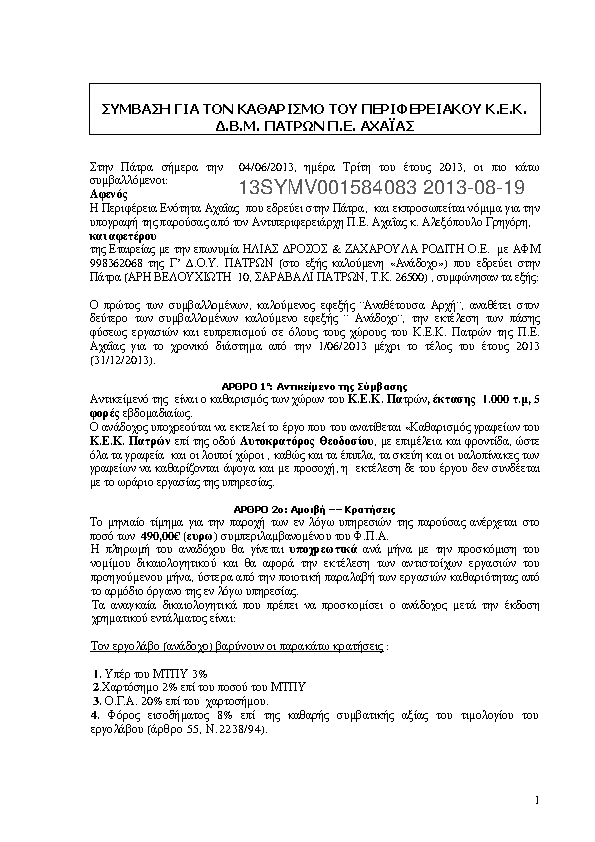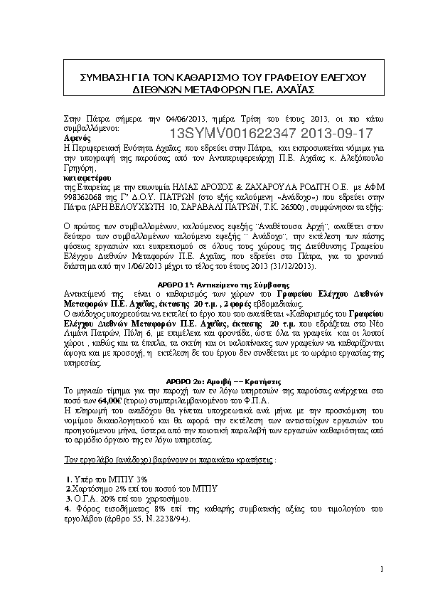 8. ΣΥΜΒΑΣΗ ΓΙΑ ΤΟΝ ΚΑΘΑΡΙΣΜΟ ΤΟΥ ΓΡΑΦΕΙΟΥ ΕΛΕΓΧΟΥ ΔΙΕΘΝΩΝ ΜΕΤΑΦΟΡΩΝ Π.Ε. ΑΧΑΪΑΣ