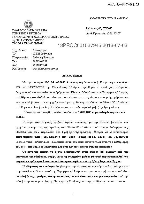 9. Πρόχειρος διαγωνισμός για τον καθαρισμό δρόμων του Εθνικού Οδικού Δικτύου Ιωαννίνων