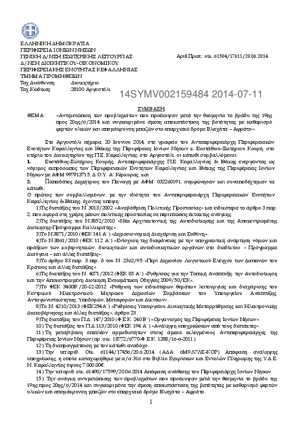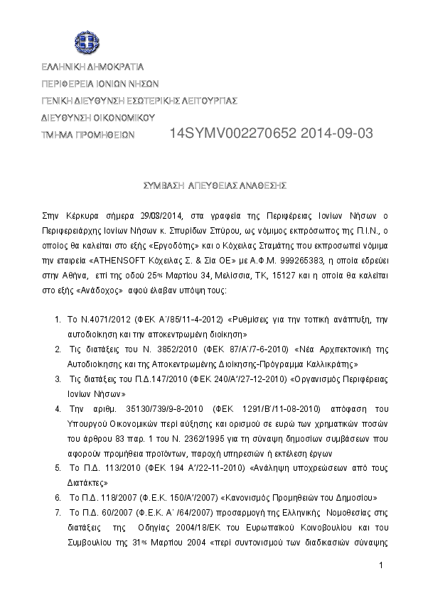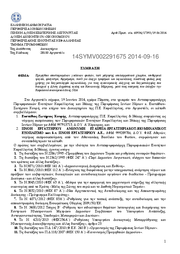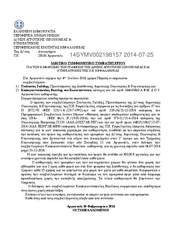 1. ΔΙΩΤΙΚΟ ΣΥΜΦΩΝΗΤΙΚΟ ΣΥΜΒΑΣΗΣ ΕΡΓΟΥ ΓΙΑ ΤΟΝ ΚΑΘΑΡΙΣΜΟ ΤΩΝ ΓΡΑΦΕΙΩΝ ΤΗΣ Δ/ΝΣΗΣ ΑΓΡΟΤΙΚΗΣ ΟΙΚΟΝΟΜΙΑΣ ΚΑ