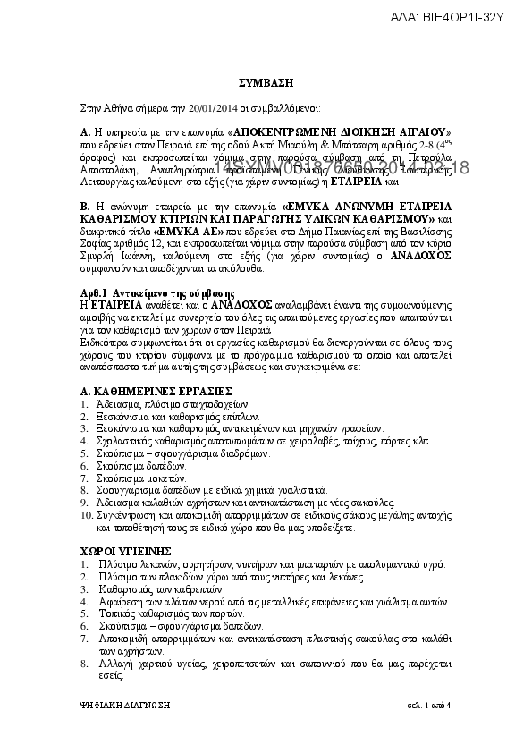 1. ΣΥΜΒΑΣΗ ΚΑΘΑΡΙΟΤΗΤΑΣ ΓΙΑ ΤΗΝ Δ/ΝΣΗ ΠΕ
