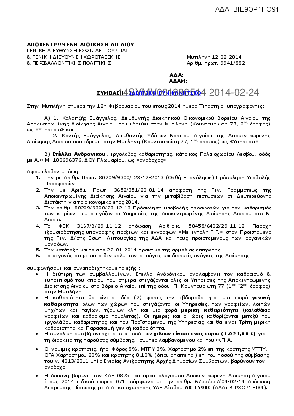 8. ΠΑΡΟΧΗ ΥΠΗΡΕΣΙΩΝ ΚΑΘΑΡΙΟΤΗΤΑΣ ΣΤΑ ΓΡΑΦΕΙΑ ΤΗΣ ΑΠΟΚΕΝΤΡΩΜΕΝΗΣ ΔΙΟΙΚΗΣΗΣ ΑΙΓΑΙΟΥ ΣΤΟΝ ΠΕΙΡΑΙΑ