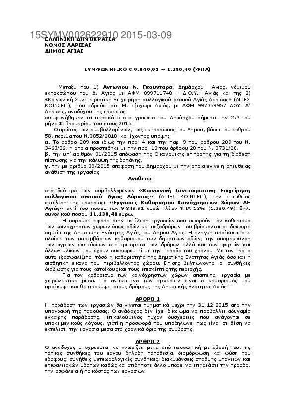 Αναζήτηση σε προκηρύξεις και συμβάσεις για: