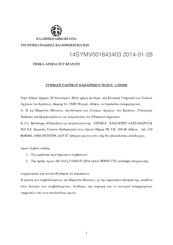 1. ΠΑΡΟΧΗ ΥΠΗΡΕΣΙΩΝ ΚΑΘΑΡΙΣΜΟΥ ΤΗΣ Κ.Υ. ΤΟΥ ΥΠΟΥΡΓΕΙΟΥ ΠΑΙΔΕΙΑΣ ΚΑΙ ΘΡΗΣΚΕΥΜΑΤΩΝ