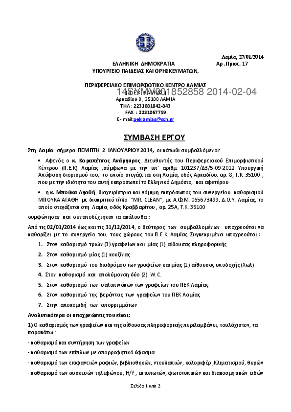 3. ΣΥΜΒΑΣΗ ΠΑΡΟΧΗΣ ΥΠΗΡΕΣΙΩΝ ΚΑΘΑΡΙΟΤΗΤΑΣ