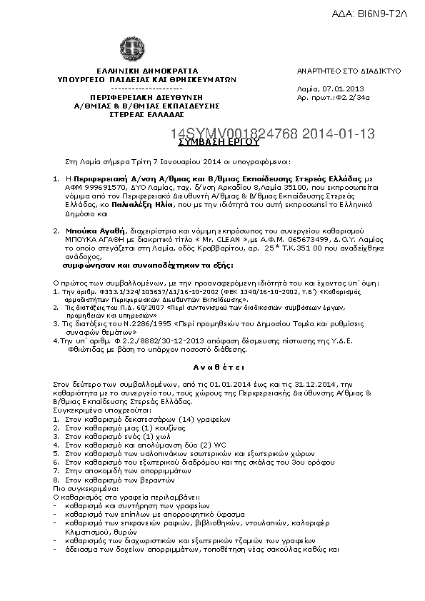 7. Για την παροχή υπηρεσιών καθαρισμού του επί της Λ. Μεσογείων 14-18 του κτιρίου της Γενικής Γραμματεί