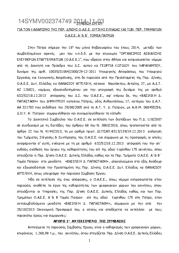 1. ΣΥΜΒΑΣΗ ΚΑΘΑΡΙΣΜΟY ΠΕΡ. Δ/ΝΣΗΣ ΟΑΕΕ ΔΥΤ. ΕΛΛΑΔΑΣ ΚΑΙ ΠΕΡ. ΤΜΗΜΑΤΩΝ Α΄& Β΄ ΤΟΜΕΑ ΠΑΤΡΩΝ