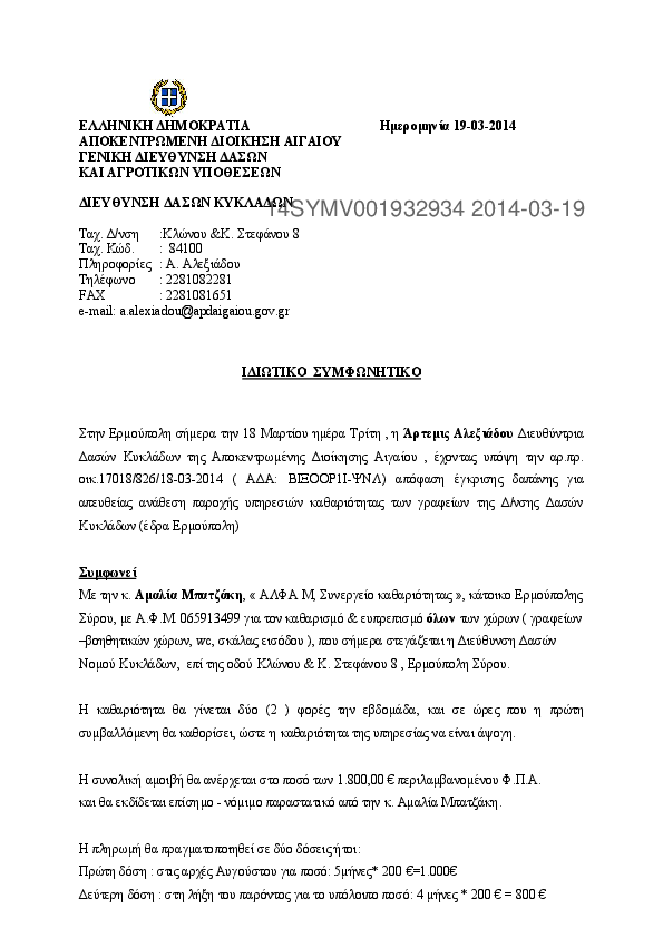 4. ΣΥΜΒΑΣΗ ΚΑΘΑΡΙΟΤΗΤΑΣ ΓΙΑ ΤΗΝ Δ/ΝΣΗ ΔΑΣΩΝ ΛΕΣΒΟΥ