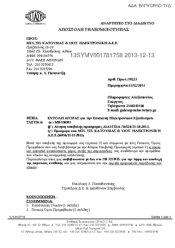 4. ΕΝΤΟΛΗ ΑΓΟΡΑΣ ΓΙΑ ΤΗΝ ΕΠΙΣΚΕΥΗ ΗΛΕΚΤΡΟΝΙΚΟΥ ΕΞΟΠΛΙΣΜΟΥ