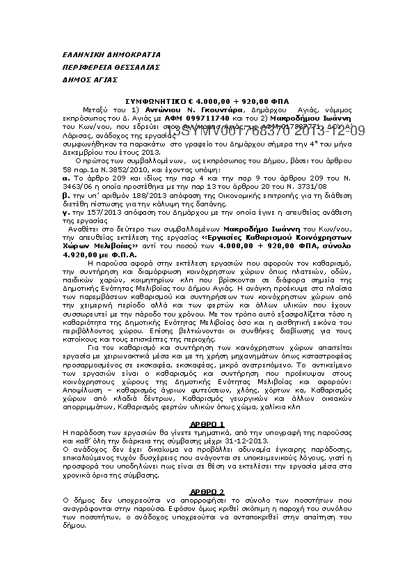 4. Εργασίες συντήρησης και καθαρισμού αθλητικών χώρων ΔΕ Ευρυμενών, Λακέρειας, Μελιβοίας