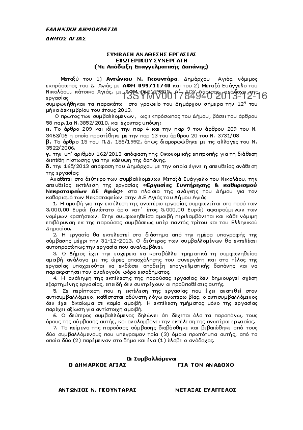 8. ΣΥΜΒΑΣΗ ΑΝΑΘΕΣΗΣ ΕΡΓΑΣΙΑΣ ΕΞΩΤΕΡΙΚΟΥ ΣΥΝΕΡΓΑΤΗ (Με Απόδειξη Επαγγελματικής Δαπάνης) Εργασίες Συντήρη
